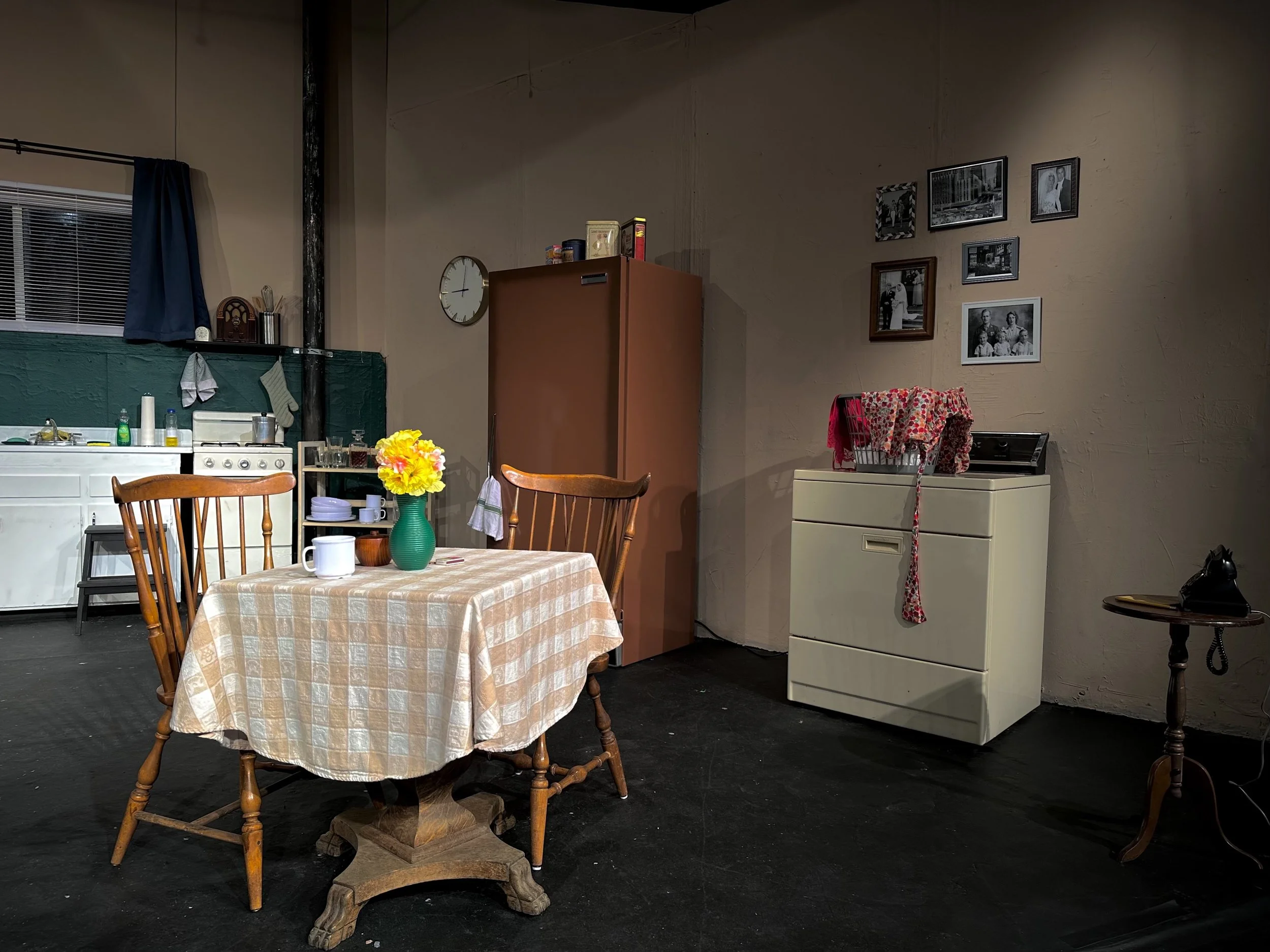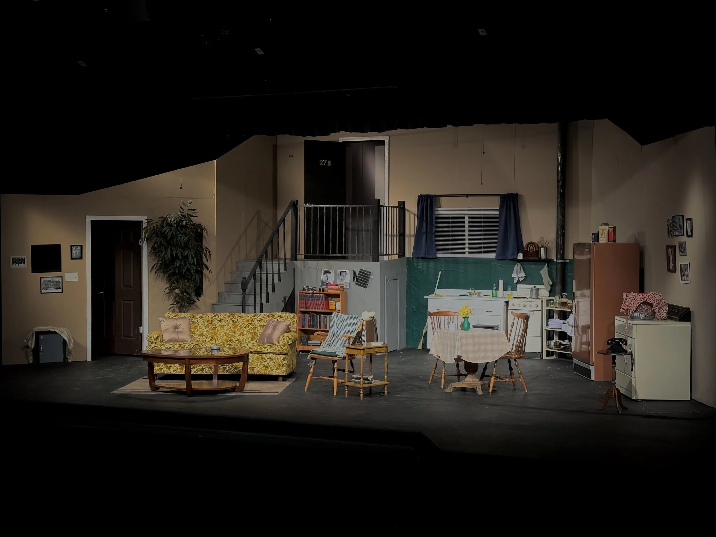 The final design embraced realism and density. The apartment was designed as a lived-in 1960s urban space, complete with period appropriate appliances, tight circulation paths, and multiple hiding places that allowed the actors to move stealthily throughout the environment. The walls rose nearly to the ceiling, enclosing the space and creating an intentionally confining atmosphere that placed the audience inside the apartment from the moment the lights came up.