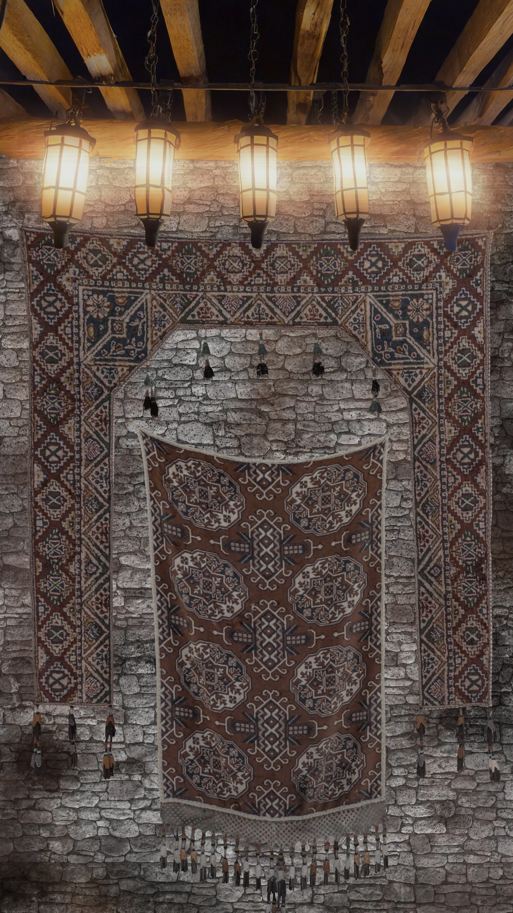 In a single cue, the audience could move from the rose window of the cathedral, rise through the rafters, pass the bell tower, and arrive in Quasimodo’s loft overlooking the city. The same system was used to represent stone walls, underground textures, cathedral doors, and Esmeralda’s amulet, allowing the audience to see what the characters were seeing.