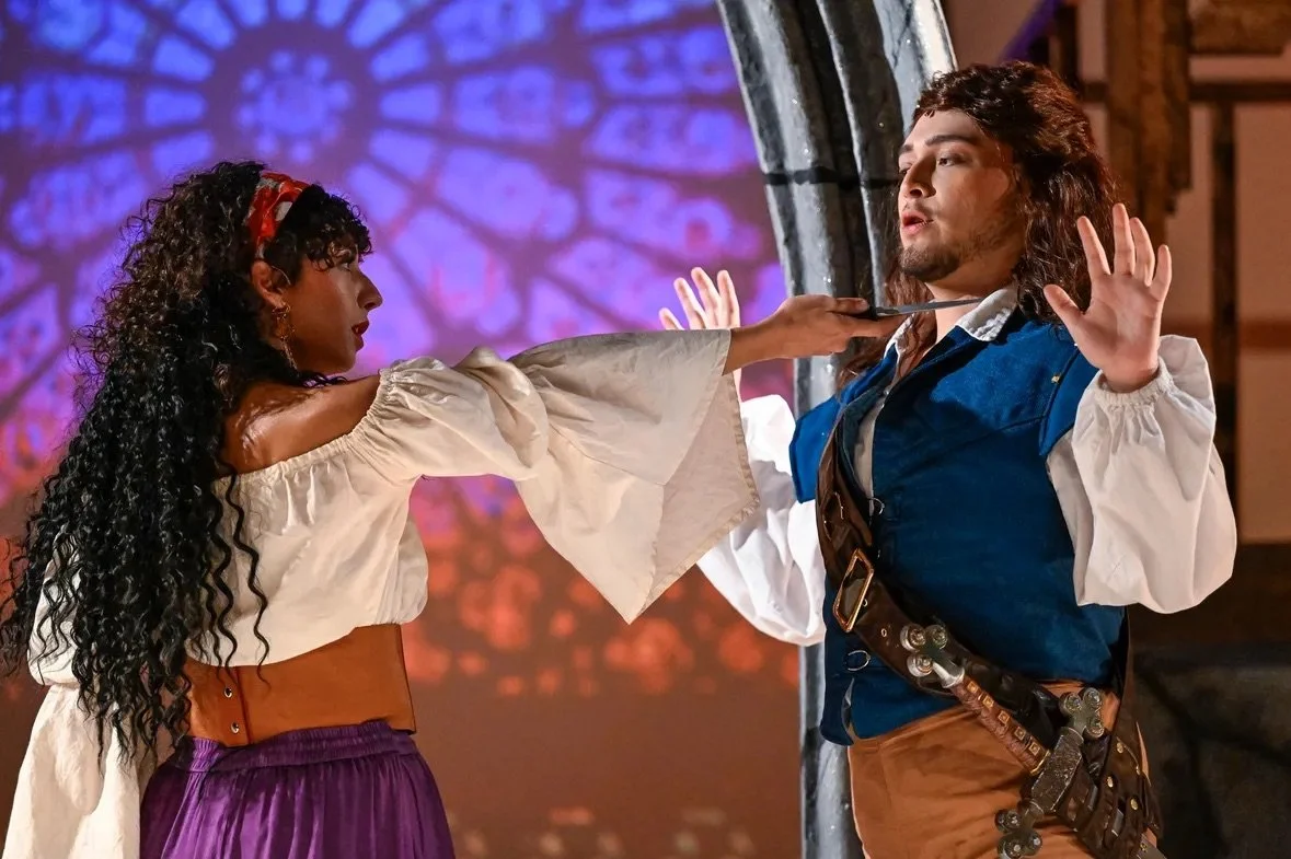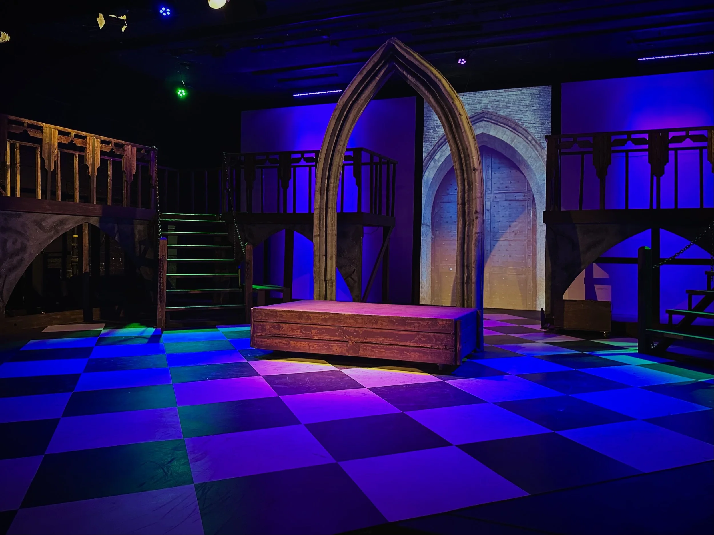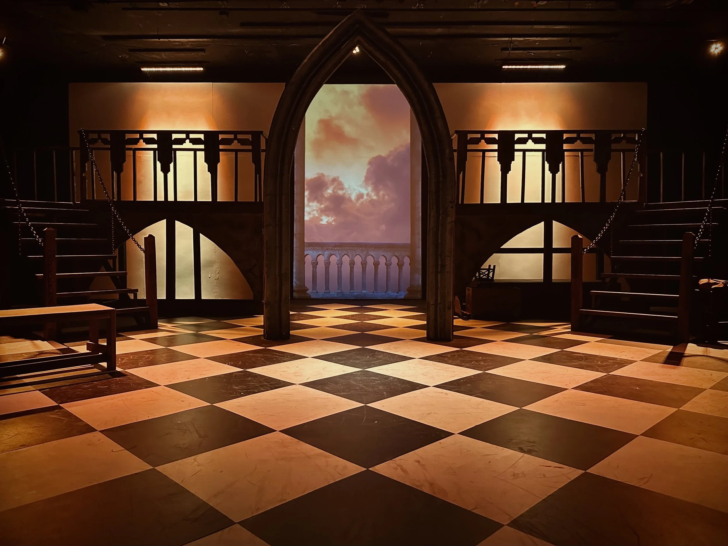 This production of The Hunchback of Notre Dame was designed as a large scale, immersive experience within a small community theater environment. Performed in a 125-seat venue with a strict budget of $4,000 and an entirely volunteer team, the goal was to achieve a sense of grandeur without overwhelming the audience or the performers.